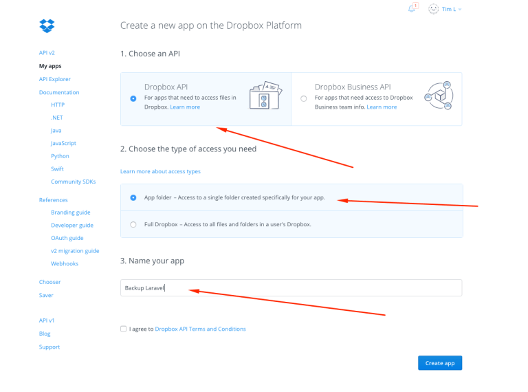 Here are the steps you need to follow in order to obtain App Token and App Secret from DropBox to backup your application.