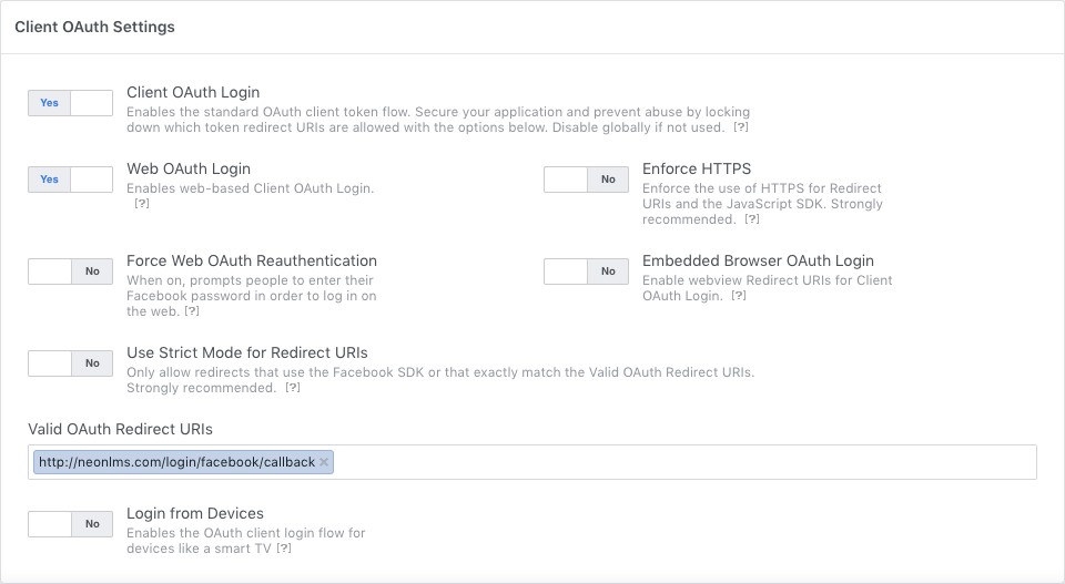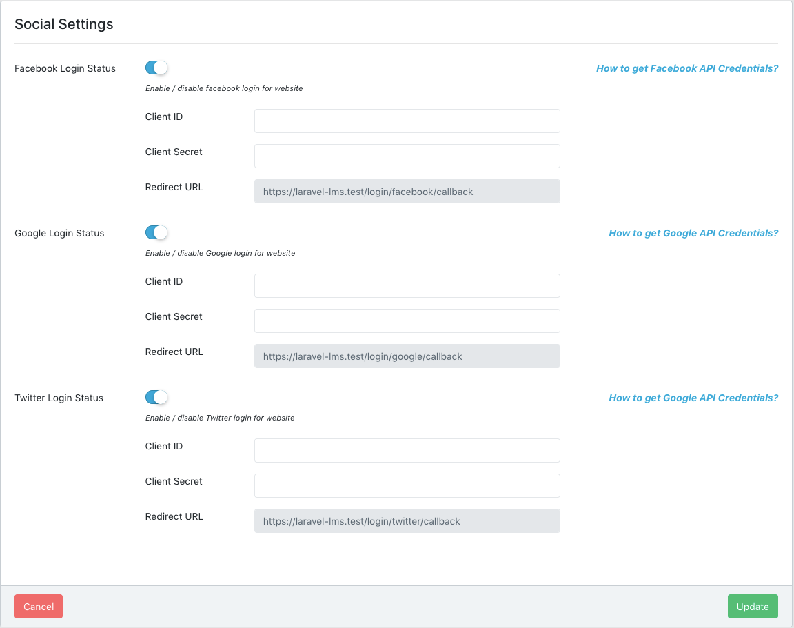 Social Login settingsNOTE: Facebook login will work on HTTPS only.