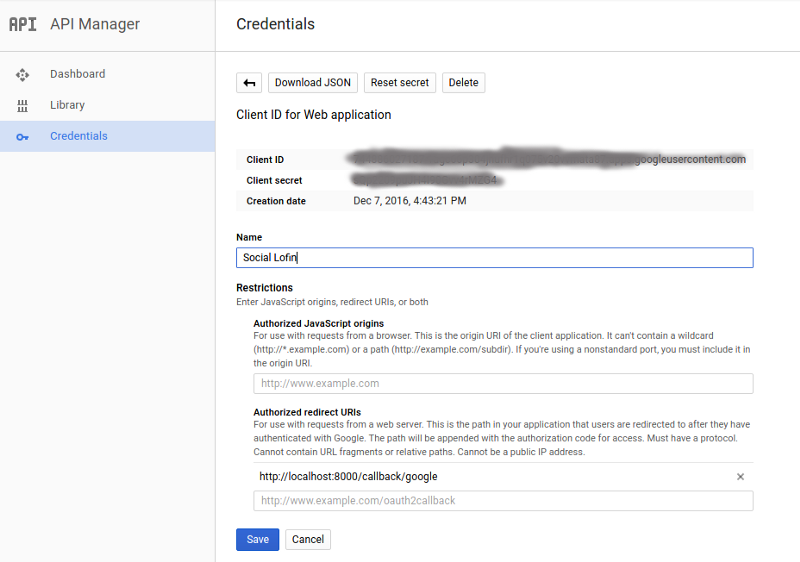 navigation and select 'Credentials'. In the dropdown select 'OAuth client ID'