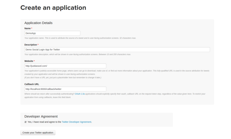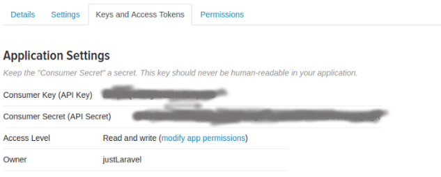After creating your app, click 'Keys and Access Tokens' tab at the top to get Client ID(App ID) and Client Secret(App Secret). Add this credentials to the website and you are good to go.